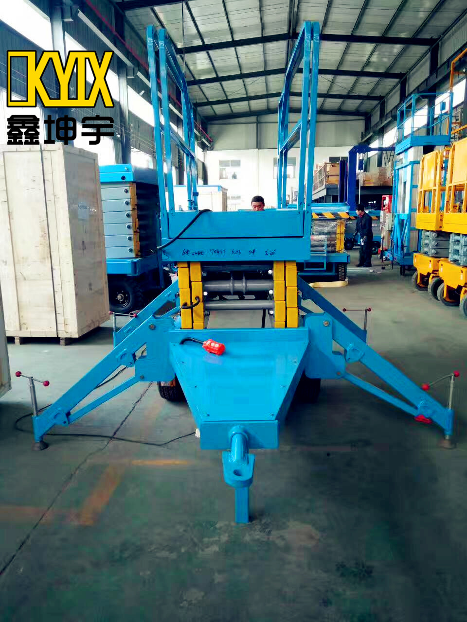 该升降机可以使用车辆牵引移动,实现快速移动升降机